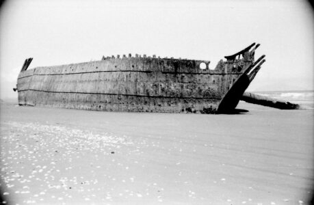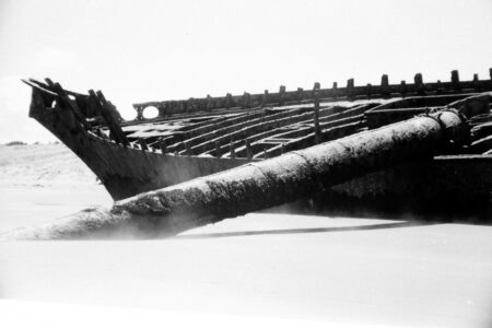 A set of photographs of the ship wreck on Waitarere Beach (near Levin). The wreck had slowly disintergrated over the years and now nothing remains.